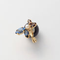 深みあるインディゴブルーとシックなブラウンのクリスタルがリボンようにデザインされた、ブラックキャッチのイヤリング。