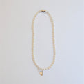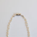 象徴的なボールチェーンの留め金具とナチュラルパールを組み合わせることで、MAYUらしくボールチェーンを表現した、ギミックの効いたネックレス。