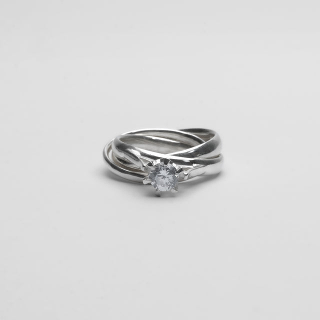 Tiny star line stone pierce (silver / cubic zirconia / pearl clasp)