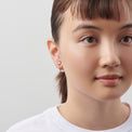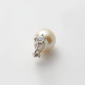一粒のキュービックジルコニアが凛と輝く、パールイヤリング。 シルバーの爪留めが、少しクラシカルな雰囲気を与えてくれます。 Tシャツからフォーマルドレスまで、幅広いコーディネートに合わせていただけます。