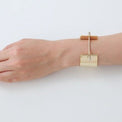 フォーマルなメンズシャツの襟の形から連想されたバングルにメンズアイテムであるカラーバーを差し込むデザインのバングルです。
