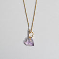卓越した技術を持つ職人が1つ1つ丁寧にカットを施した、ハートモチーフのチャーム。 天然石を通して映り込む光が、美しく輝くよう計算されたシャープなライン。 透明感のある淡いヴァイオレットが優美なアメジスト。 誠実、心の平和の象徴ともされており、2月の誕生石でもあります。