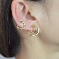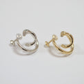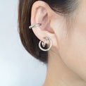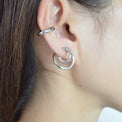まるでピアスをつけているかような着用姿が印象的な、二つの異なるフープが交差したデザインのイヤリング。