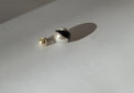 職人がひとつひとつ手作業で、パールにエナメルで線を描いています。ポストは、ブラックとホワイトのガラスパールで2色を用意しました。モードな雰囲気のあるPEARL RIVETSを楽しめるアイテムです。
