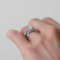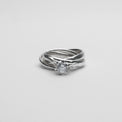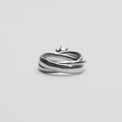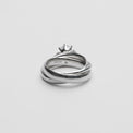 3本のリングがレイヤーされたデザイン。 異なる素材、クラシカルなソリテールリングとベーシックなラインが織りなす一つは、様々なシーンに似合います。 素材にメッキをかけることなく、経年の変化を楽しむリングは、よりボーダレスに使ってもらいたい希望がこもっています。