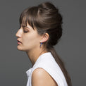 職人の手によって接合された、2つの天然石がキャッチになっている、贅沢なピアス。