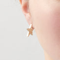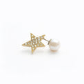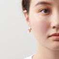 耳たぶから飛びだすように、立体的につくスターデザインが、めずらしいピアス。 上品に輝くクリスタルガラスが散りばめられた面と、シンプルなマットゴールドの面で、リバーシブルでご着用いただけます。