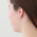 3つの小さなパールが連なるフロントピアスは耳たぶにやさしく沿うデザイン。