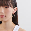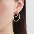 しなやかで少し太めのラインが螺旋を描き、 耳元を通り抜けたようなエッヂの効いた大胆なピアス。 サイズ違いのラインが耳もとに躍動感を与えてくれます 重なりあった2つのラインが角度によって 異なった印象で見え、どの方向から見ても 楽しめるデザインになっています。 ラインの先端にあしらわれたキラリと光る クリスタルガラスがアクセントに。