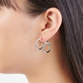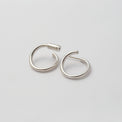 しなやかで少し太めのラインが螺旋を描き、 耳元を通り抜けたようなエッヂの効いた大胆なピアス。 19㎜の大きさが着けやすいサイズになっています。 重なりあった2つのラインが角度によって 異なった印象で見え、どの方向から見ても 楽しめるデザインになっています。 ラインの先端にあしらわれたキラリと光る クリスタルガラスがアクセントに。