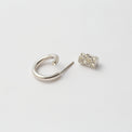 しなやかで少し太めのラインが螺旋を描き、 耳元を通り抜けたようなエッヂの効いた大胆なピアス。 小ぶりながらも強さと上品な雰囲気を与えてくれます。 ヘッドのラインの先端部分とキャッチにあしらわれた キラリと光るクリスタルガラスが 顔回りを華やかにしてくれます。