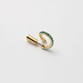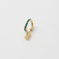 鮮やかなエメラルドカラーが、コーディネートのポイントに。