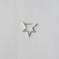 線の太さにこだわったオープンワーク。デザイナーのハンドライティングによるシンプルなデザインが大人の美しさを引き立てます。同シリーズのゴールドカラーやサイズ違いと合わせた、アシンメトリーなコーディネートもおすすめです。