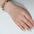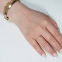 2石のキュービックジルコニアそれぞれが、さりげなく異なるセッティングを施されたリングです。