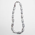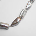 グレーカラーのバロックパールとシルバー金具の組み合わせが、エレガントかつクールな一本です。