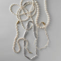 象徴的なボールチェーンの止め金具とナチュラルパールを組み合わせることで、MAYUらしくボールチェーンを表現した、ギミックの効いたネックレス。