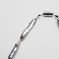スティックのようなグレーパールが個性的でありながらコーディネートをクールにしめてくれる一点です。