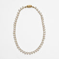 象徴的なボールチェーンの留め金具とナチュラルパールを組み合わせることで、MAYUらしくボールチェーンを表現した、ギミックの効いたネックレス。