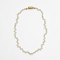 象徴的なボールチェーンの留め金具とナチュラルパールを組み合わせることで、MAYUらしくボールチェーンを表現した、ギミックの効いたネックレス。