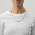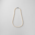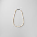 象徴的なボールチェーンの止め金具とナチュラルパールを組み合わせることで、MAYUらしくボールチェーンを表現した、ギミックの効いたネックレス。丸に近淡水パールのポテトをシンプルに連ねたネックレスは、フォーマルな装いにも似合う一点です。