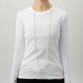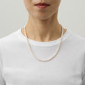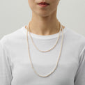 象徴的なボールチェーンの止め金具とナチュラルパールを組み合わせることで、MAYUらしくボールチェーンを表現した、ギミックの効いたネックレス。4-5mmの小粒な淡水パールをシンプルに連ねたネックレスは、一本でつけることはもちろん、レイヤースタイルや、チャームを取り付けたり、様々なコーディネートを楽しめる一点です。