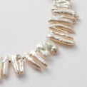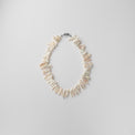 象徴的なボールチェーンの止め金具とナチュラルパールを組み合わせることで、MAYUらしくボールチェーンを表現した、ギミックの効いたネックレス。印象的な形のパールをショート丈で仕立てたネックレスは、着け襟のように楽しめる、存在感たっぷりの一点です。