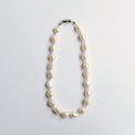 象徴的なボールチェーンの止め金具とナチュラルパールを組み合わせることで、MAYUらしくボールチェーンを表現した、ギミックの効いたネックレス。