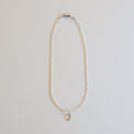 象徴的なボールチェーンの留め金具とナチュラルパールを組み合わせることで、MAYUらしくボールチェーンを表現した、ギミックの効いたネックレス。