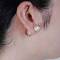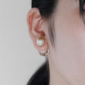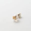 クリアな樹脂の中に、ホワイトパールとイニシャルのプレートを閉じ込めたピアス。
