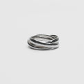 3本のリングがレイヤーされたデザイン。 それぞれ幅の異なるベーシックなリングが織りなす一つは、様々なシーンに似合います。 素材にメッキをかけることなく、経年の変化を楽しむリングは、よりボーダレスに使ってもらいたい希望がこもっています。