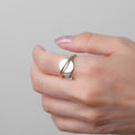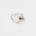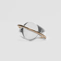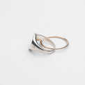 2本のリングがレイヤーされたデザイン。 異なる素材、繊細なラインと重厚感のあるシグネットリングが織りなす一つは、様々なシーンに似合います。 素材にメッキをかけることなく、経年の変化を楽しむリングは、よりボーダレスに使ってもらいたい希望がこもっています。